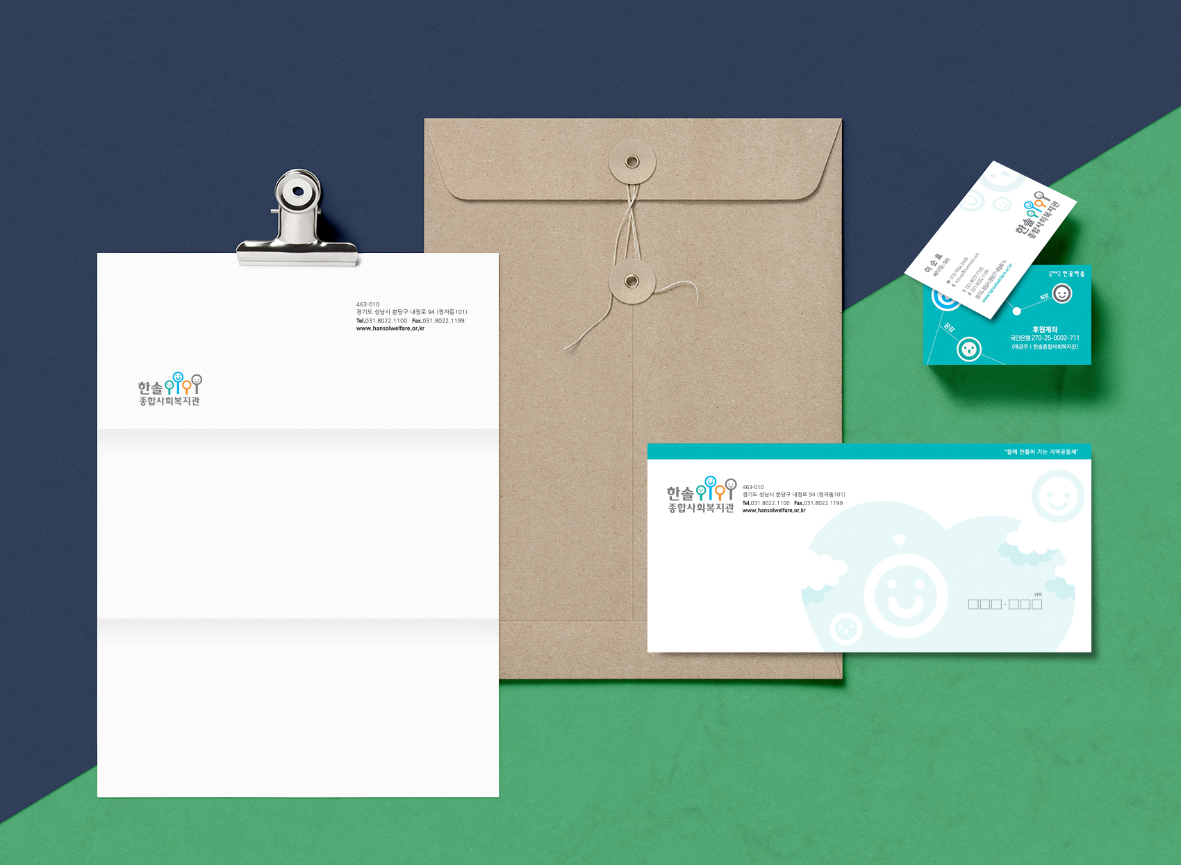 디자인팝은 이번 한솔종합사회복지관 CI 리뉴얼 프로젝트에 있어 기존 타 복지관들이 가지고 있지 못하였던 정체성, 일관성 그리고 ,컬러를 통한 인식률등을 고려하고 조형적으로도 안정적인 균형과 베리에이션 시 각각의 부서를 정확히 인식할 수 있도록 개발 진행하였습니다.