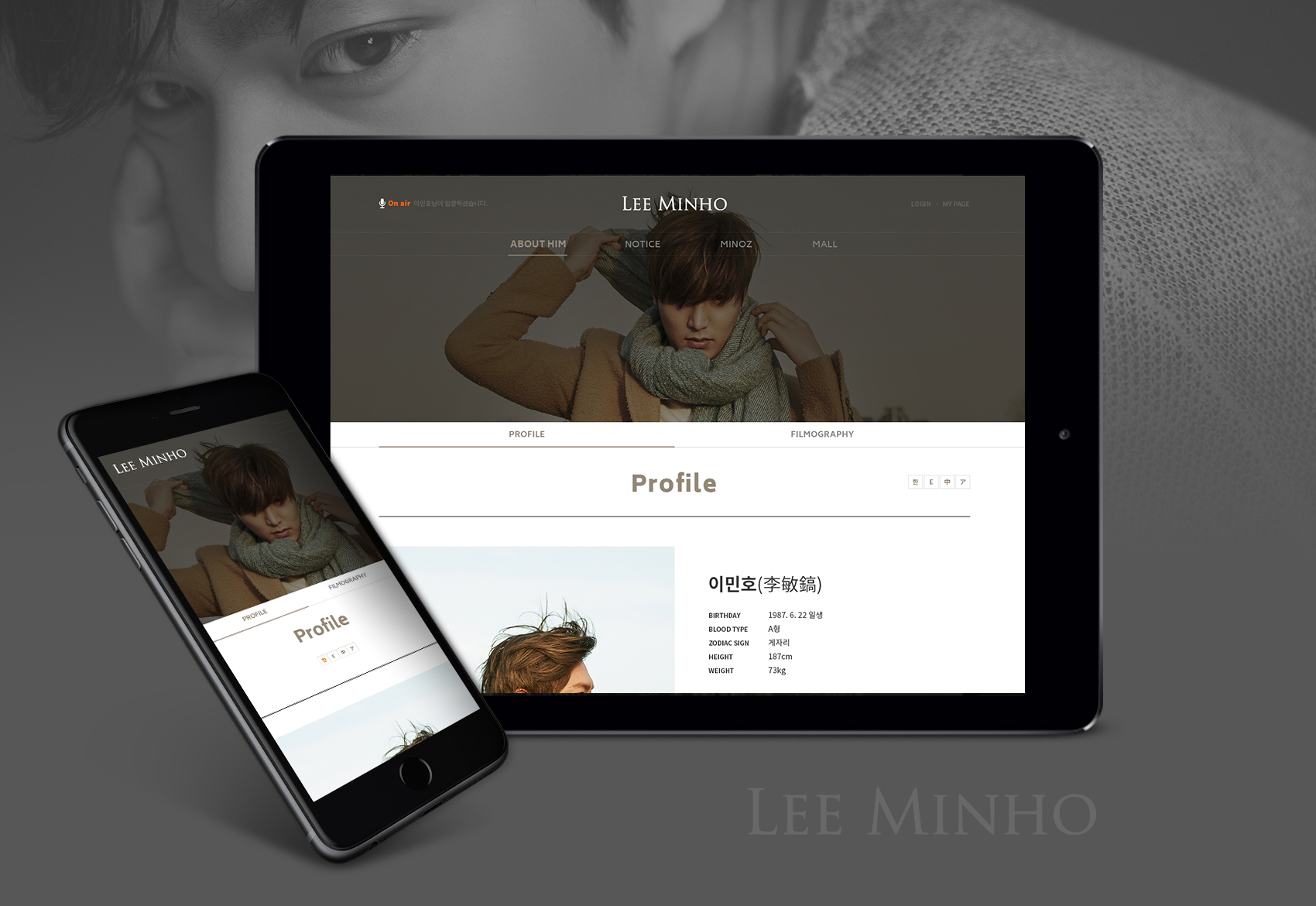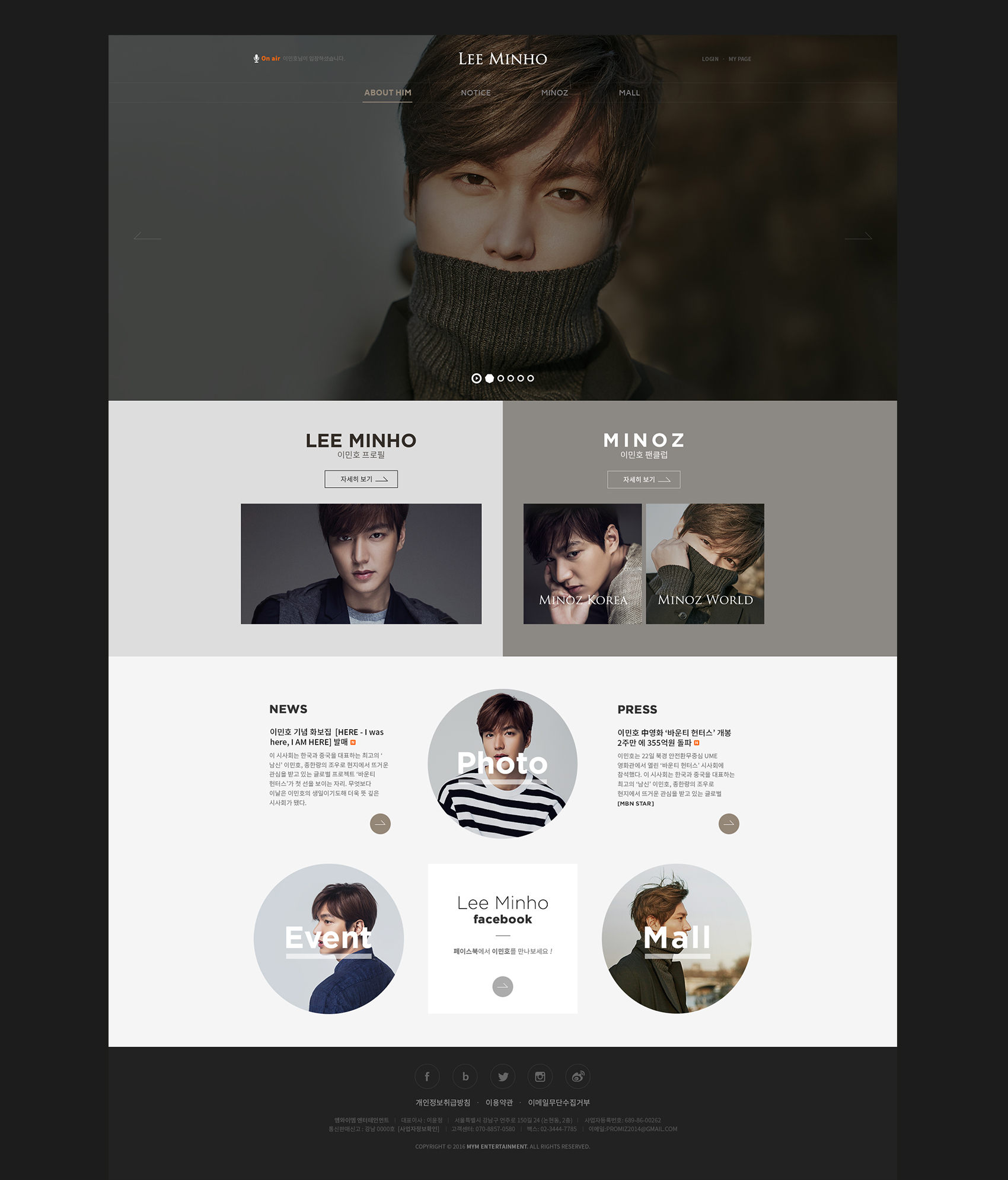 디자인팝(NO.1 E-Commerce Digital Creative Group)이 배우 이민호 공식 웹사이트 개발을 완료하였습니다.