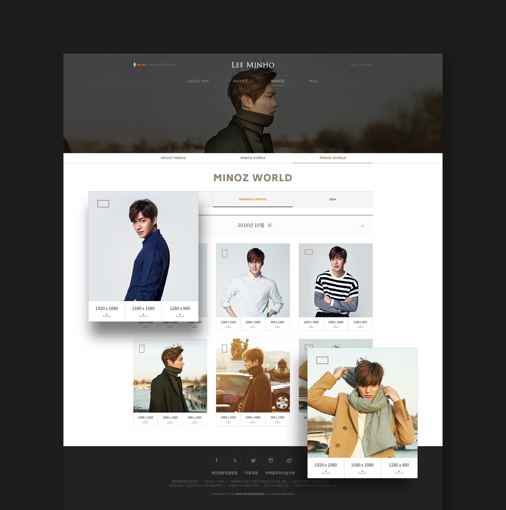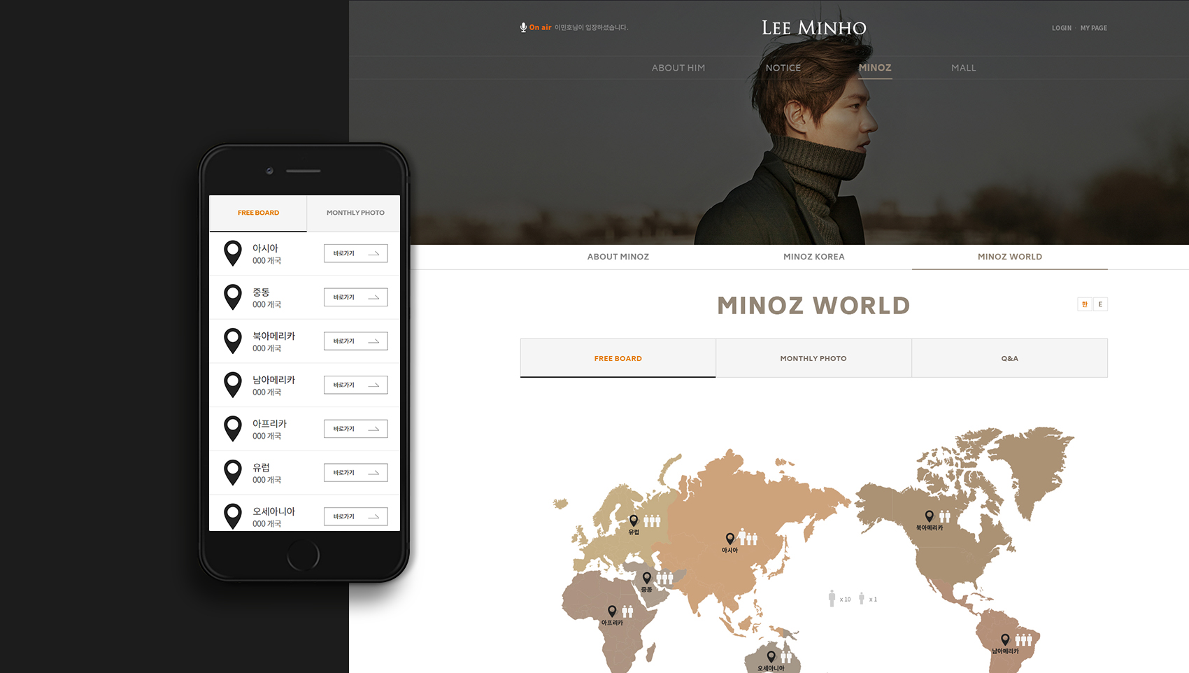 현재 배우 이민호 공식 반응형 웹사이트는 한류 팬들뿐만 아니라 글로벌 팬들까지 매우 높은 관심을 가지고 있으며 성공적인 팬클럽 사이트로 성장시킨 후 현재 팬들이 만들어가고 있는 기부 쇼핑몰(PMZ, 프로미즈)의 리뉴얼 개발까지 디자인팝과 함께 진행할 계획입니다.