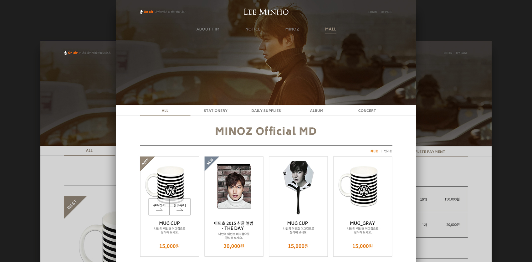 또한 별도의 쇼핑몰을 이민호 공식 웹사이트에 흡수하여 One Stop 서비스 채널로써의 역할로 공식 웹사이트에서의 이탈율과 부진했던 매출을 다시 증대할 수 있는 사이트로 개발하였습니다. 하나의 통합된 웹사이트로 통해 소속사 관계자들의 업무적 편리성을 증대한 관리방안과 특히, 해마다 정회원 등업의 불편함을 관리자에서 쉽게 업데이트하는 기능으로 몇일동안 회원등업 관리의 불편함을 해소할 수 있고 팬들에게 신속/정확한 콘텐츠를 서비스 할 수 있는 사이트로 구성되어 내/외부적인 만족도가 높은 사이트로 개발되었습니다.