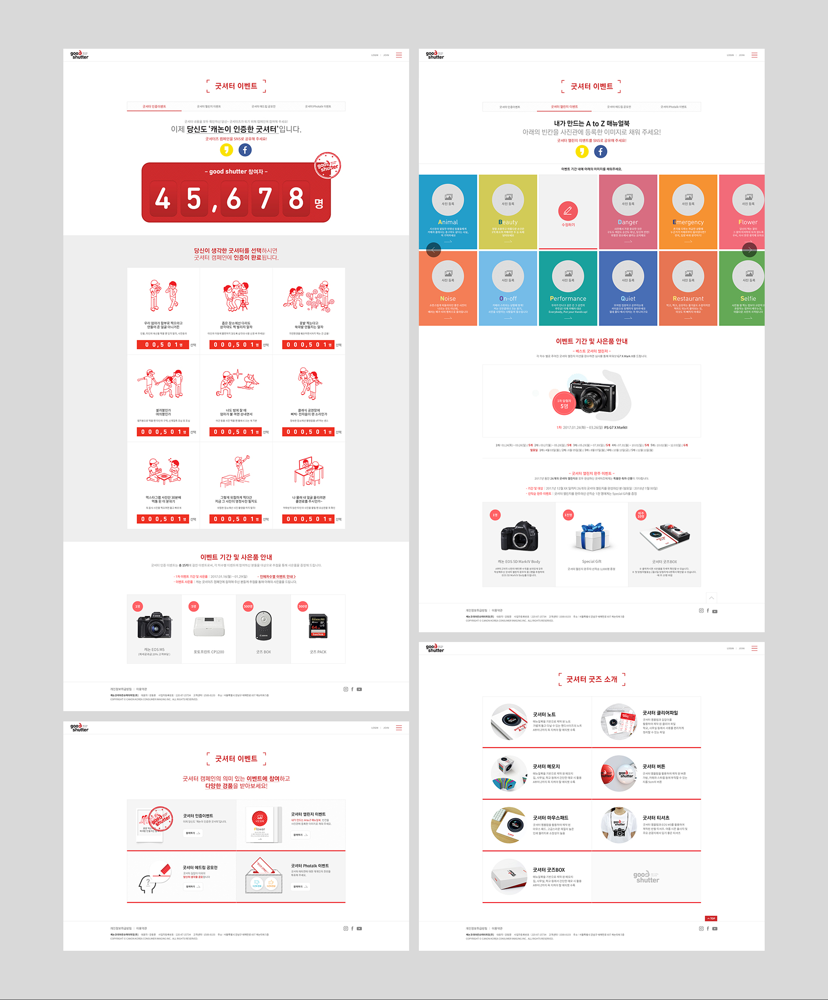 굿셔터 캠페인 웹사이트에서는 다양한 이벤트를 통해 캠페인의 성격과 참여를 유도하고 참여 대상자에게는 굿셔터 굿즈들과 함께 캐논 정품 카메라, 포토프린트 등을 경품으로 제공하며, 깜짝 이벤트를 통해 많은 유저들의 지속적 관심과 참여를 이끌 예정입니다.
