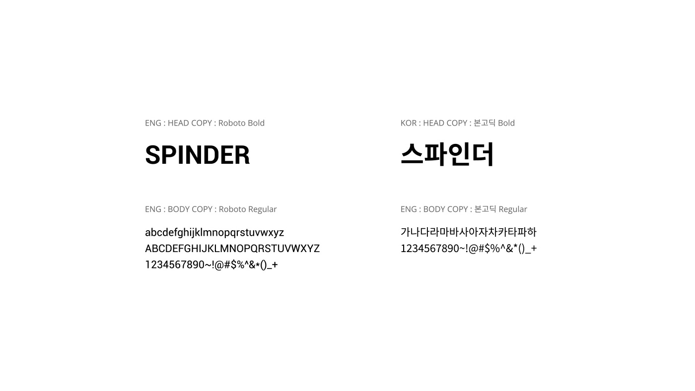 스파인더의 CI개발은 이니셜 "S"와 "F"에서 영감을 받아 디자인되었으며, 네 개의 유닛이 모여 하나의 심볼을 완성하는 형태를 통해 스파인더의 매력적인 크리에이티브를 표현하였습니다. 이러한 디자인은 스파인더의 독특한 스타일과 창의력을 상징적으로 나타내며, 각 유닛의 조합은 개별적으로도 아름다운 모습을 보여줍니다.