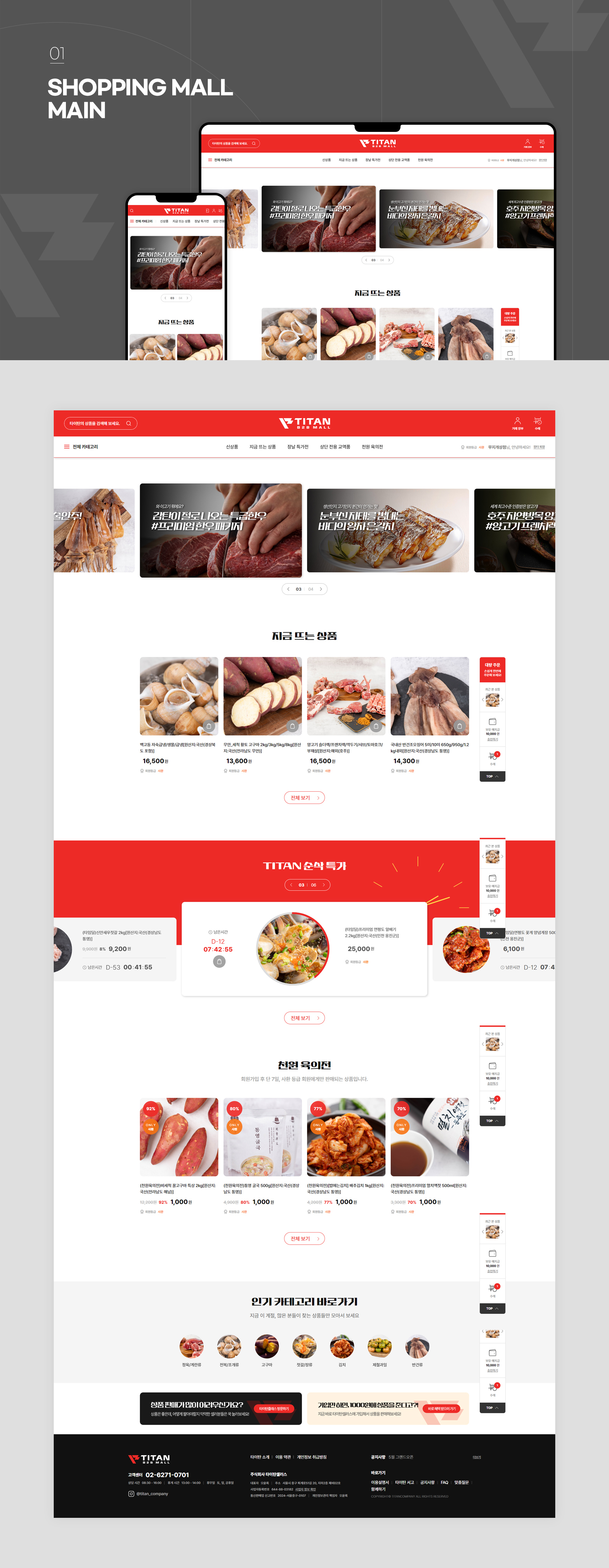 타이탄은 온/오프라인 판매 및 마케팅 강의를 진행하며, 농수산물 도/소매 위탁 판매 사업을 운영하는 회사로 더 많은 수익 창출과 셀러 및 공급사 모집을 위해, 디자인팝과 협력하여 체계적이고 효율적인 매출 증대를 목표로 B2B몰을 기획하고 오픈하였습니다.