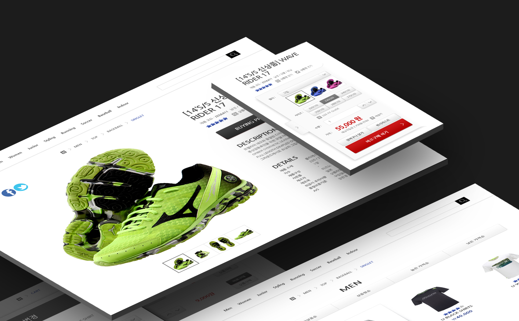 전체적인 웹사이트의 느낌 자체를 깔끔하면서도 정확히 정립되어 사용자가 원하는 정보에 쉽고 빠르게 도달할 수 있느냐는 끊임없는 고민과 사용자가 느끼게 될 미즈노의 이미지 아이덴티티를 만들기 위해 노력하였습니다.