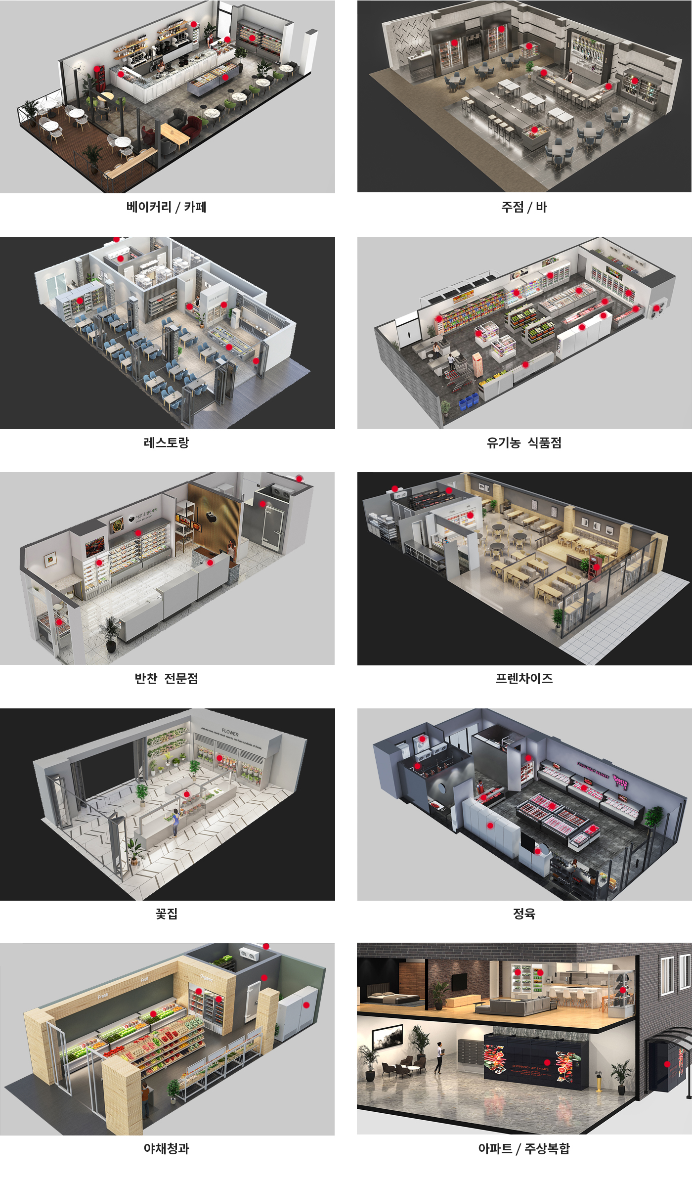 특히 규모성이 있는 제품을 실질적으로 볼 수 있도록 3D CG를 통한 투시도로 매장에서 보는 듯한 제품 연출 구축과 해당 업종별 아이소메트릭을 개발하여 소비자의 업종별 제품정보로 쉽게 접근하게 개발하였으며, 제품촬영을 통한 제품정보 디자인 개발까지 디자인팝의 특장점을 살린 프로젝트로 구축하였습니다.